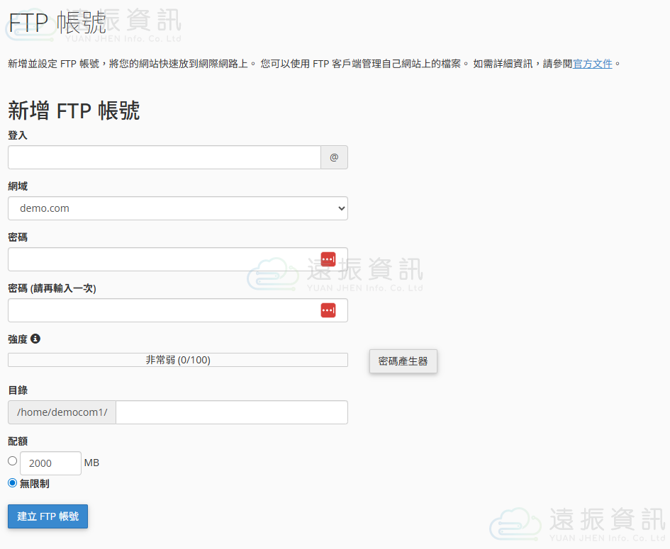 此功能可以讓您快速建立 FTP 帳號。