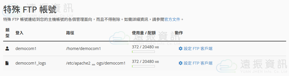 此處為 cPanel 系統預設建立的 FTP 帳號。