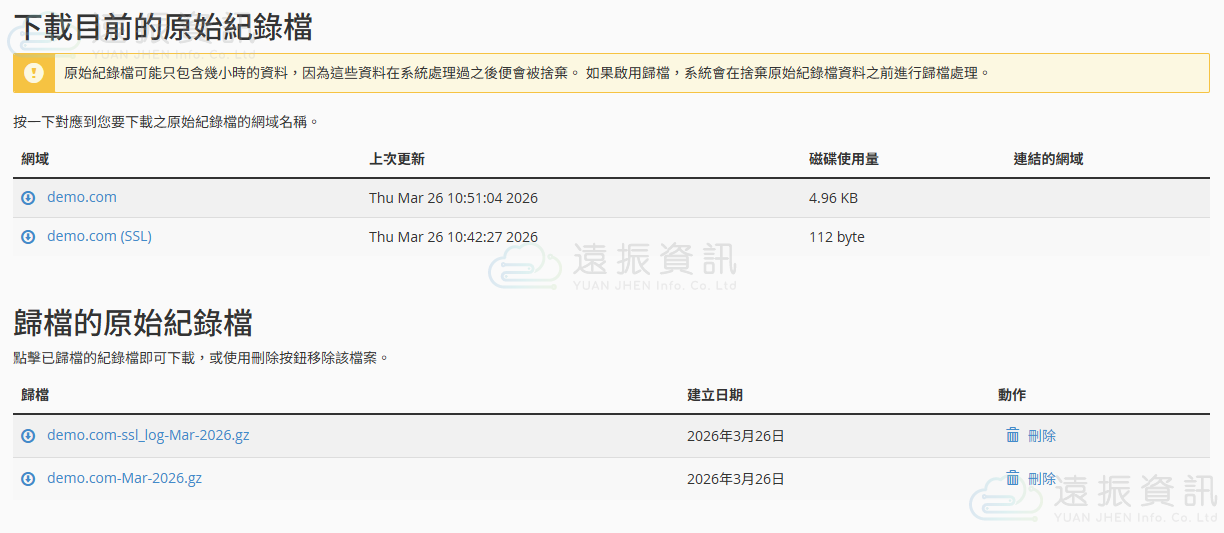 在此處可以查看您 cPanel 帳號的原始紀錄檔。