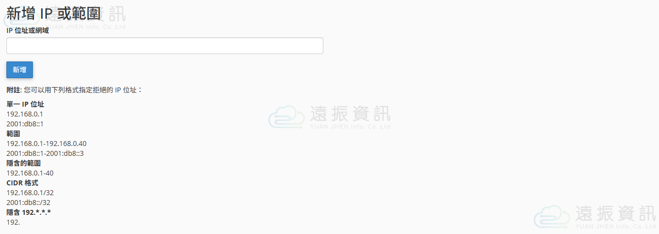 可以在此將特定 IP 或 IP 範圍,拒絕存取您的網站。